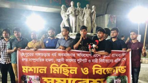 রংপুরের গঙ্গাচড়ায় ধর্ম অবমাননার অভিযোগে গ্রামবাসীর ওপর সাম্প্রদায়িক হামলা, সন্ত্রাসী কায়দায় লুটপাট ও নারী নির্যাতনের প্রতিবাদে মশাল মিছিল ও সমাবেশ করেছে ঢাকা বিশ্ববিদ্যালয়ের (ঢাবি) জগন্নাথ হলের একদল শিক্ষার্থী। মঙ্গলবার (২৯…